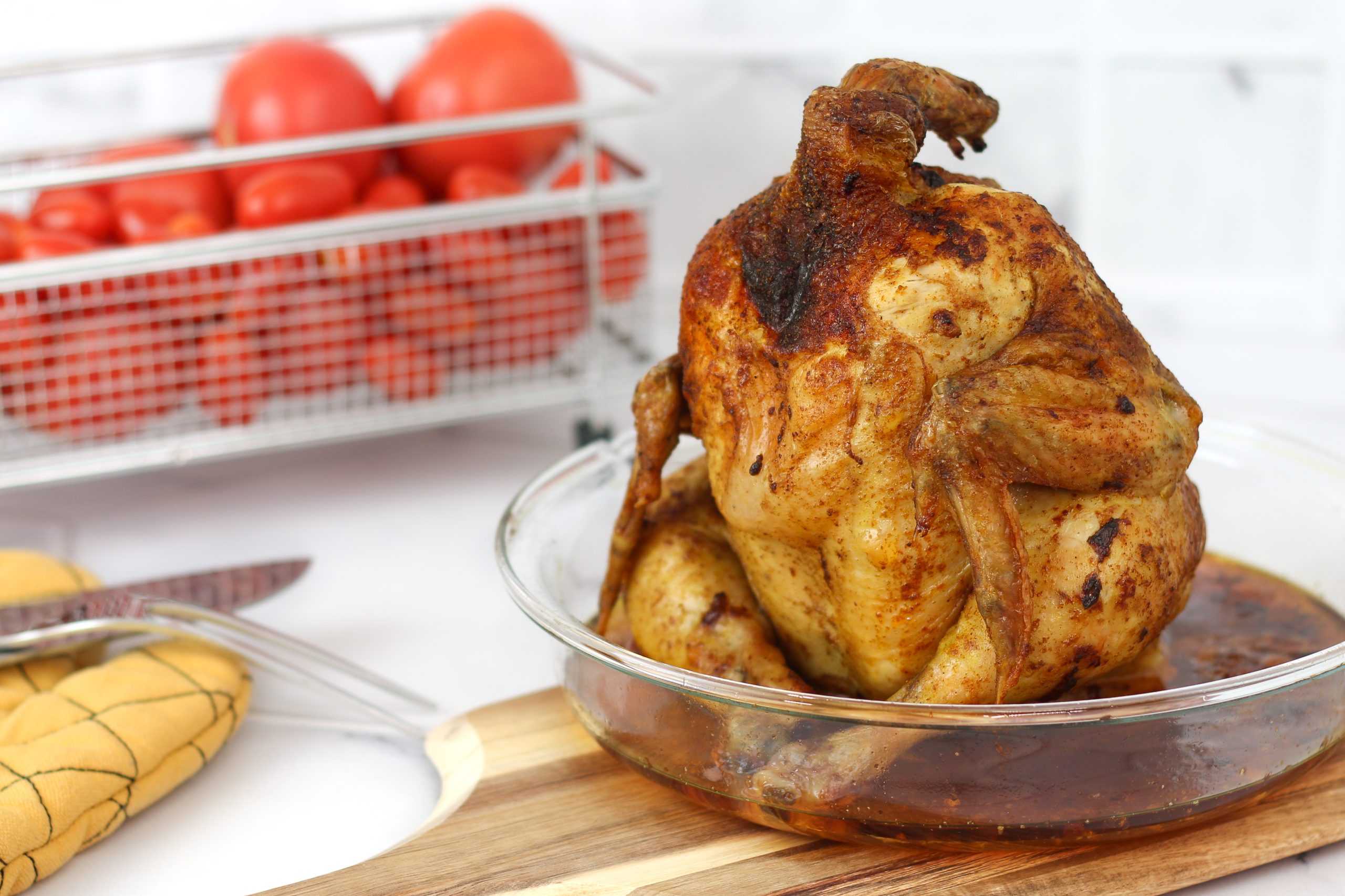 Nie każdy ma w domu piekarnik z funkcją rożna. Nie każdy ma też pod ręką butelkę po piwie (lub z piwem), którą można wykorzystać do pieczenia kurczaka. Zresztą z butelkami zawsze jest tak samo: jest jedna odłożona do zadań specjalnych, a kiedy naprawdę jest potrzebna – nagle znika. Ale… rumiany, soczysty i perfekcyjnie wypieczony kurczak wcale nie wymaga ani rożna, ani prowizorycznych konstrukcji. Wystarczy szklany stojak do pieczenia kurczaka – stabilny, wygodny i stworzony dokładnie do tego celu. Wystarczy jeszcze tylko sprawdzony przepis i jeden prosty trik, dzięki któremu kurczak nie ma sobie równych.